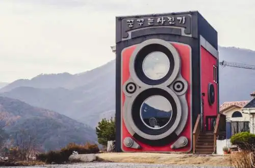 Kaviareň Dreamy Camera Cafe sa nachádza v ospalej dedine na okraji Soulu a umožňuje svojim zákazníkom vliezť dovnútra obrieho fotoaparátu a pozrieť sa z druhej strany obrieho objektívu.
