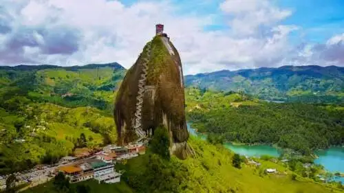 Masívna skala vystupujúca z rovinatej krajiny v kolumbijskom Guatape, Piedra de Penol alebo El Peñon de Guatape, bola kedysi uctievaná indiánmi z kmeňa Tahamies.
