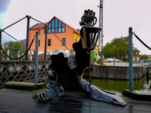 Pravdepodobne najnezvyčajnejšia pamiatka v starom meste, aspoň pre novoprichádzajúcich turistov, sa nachádza na pokojnom nábreží. Tu sa z vody šplhá prízračná postava v kapucni, nie nepodobná Nazgulovi z Pána prsteňov, a v zovretej ruke drží lampáš.