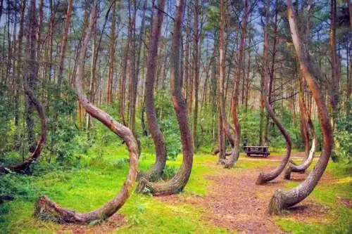 Podľa miestnych legiend sa medzi krivými stromami skrývajú duchovia a strašidlá. Jeden z príbehov hovorí o mladom dievčati, ktoré zmizlo v lese, aby sa o päť rokov neskôr objavilo a nepamätalo si, kde bolo. Iná legenda hovorí o pastierovi, ktorý spolu so svojimi ovcami zmizol v lese. A keďže väčšina takýchto miest je spojená s nadprirodzenými javmi, kolujú aj povesti o stretnutiach s mimozemšťanmi.