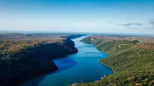 Tento záliv je technicky ria (zatopené riečne údolie, ktoré zostáva otvorené smerom k moru). S dĺžkou približne 11,5 km je to najväčšia ria v Stredozemnom mori. Zátoka kedysi tvorila ústie dnes už zaniknutej rieky, ktorá vyhĺbila 35 km dlhé údolie, ktoré sa dnes tiahne až do centrálnej časti polostrova Istria. Hĺbka mora v zálive je viac ako 50 metrov a na protiľahlých stranách sú strmé kopce.