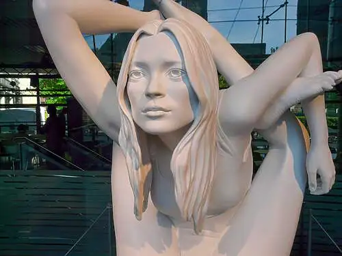 Táto pozoruhodná socha supermodelky v joga póze sa svojou provokatívnou prítomnosťou v historickej pasáži v centre mesta vymyká tradičnému verejnému umeniu.