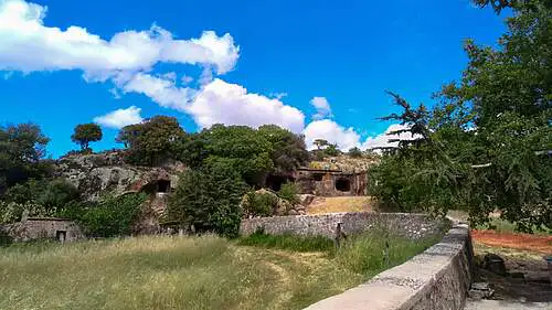 Nuragická hrobka, rímska hrobka a byzantský kostol, všetky ukryté v skale.