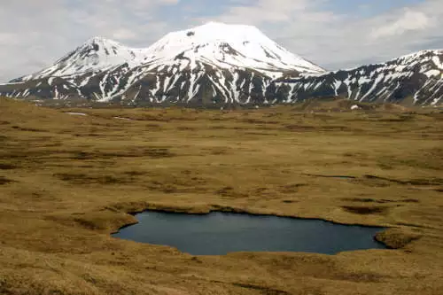 Tu – nad Pacifickým ohnivým kruhom – hovorí zem sama za sebe, stranou pozornosti človeka. Opakovane tu vybuchujú sopky, ktoré nikoho neohrozujú. Hora nazvaná po trojhlavom psovi strážiacim podsvetie je najživšia. Jeho tri vrcholy strážia pustý hornatý kraj; stále zatiahnuté nebo ho zafarbuje do purpurova. Niekoľko vulkánov si čas od času odpľuvne a vypustí malé dymové vlajky. Môžu to ale byť i mraky, ktoré na vrcholkoch stále visia.