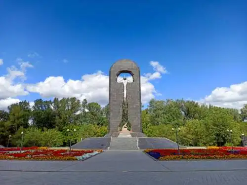 Tento 30 metrov vysoký náhrobný kameň pripomína obete 40 rokov trvajúcich jadrových skúšok v Kazachstane.