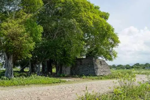 Zvyšky bývalej koloniálnej pevnosti na úseku pláže, ktorú občas navštevujú krokodíly.